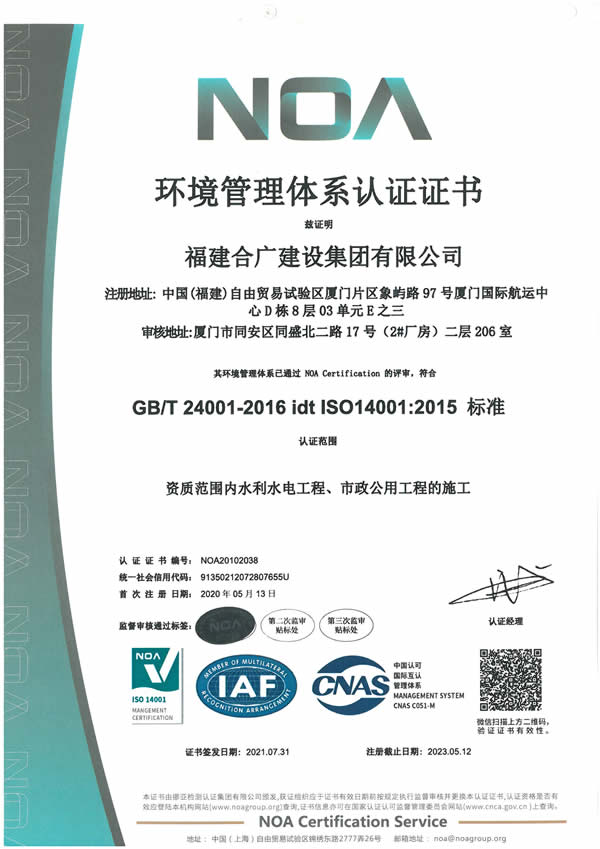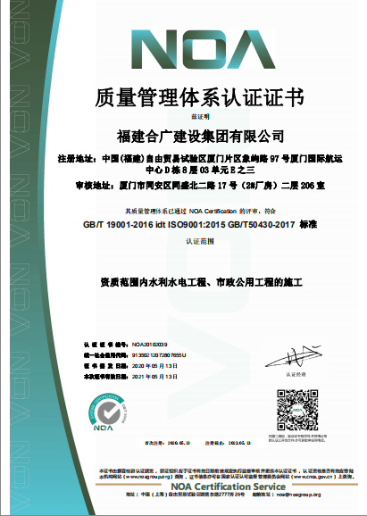福建合廣建設(shè)集團(tuán)有限公司,注冊資本5188萬元人民幣,公司位于廈門市同安區(qū)鳳山一里151-17號。本公司成立于2013年,公司具備市政公用工程、水利水電工程、房屋建筑工程、公路工程、園林綠化等多專業(yè)施工資質(zhì)。企業(yè)從業(yè)人員100多人,各類專業(yè)技術(shù)人員70多人,其中高級職稱8人,中級職稱40多人,一級建造師6人,二級建造師15多人。